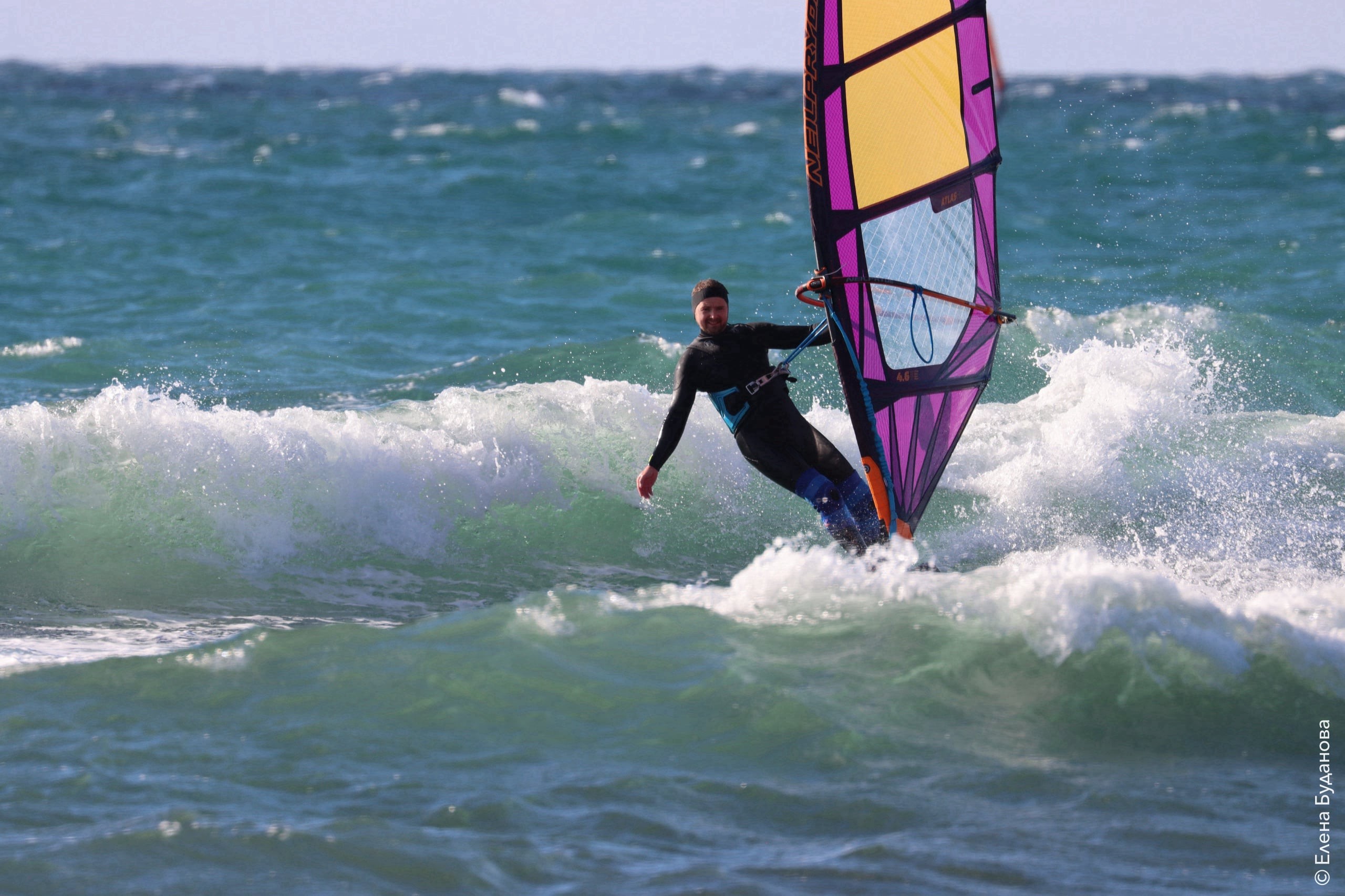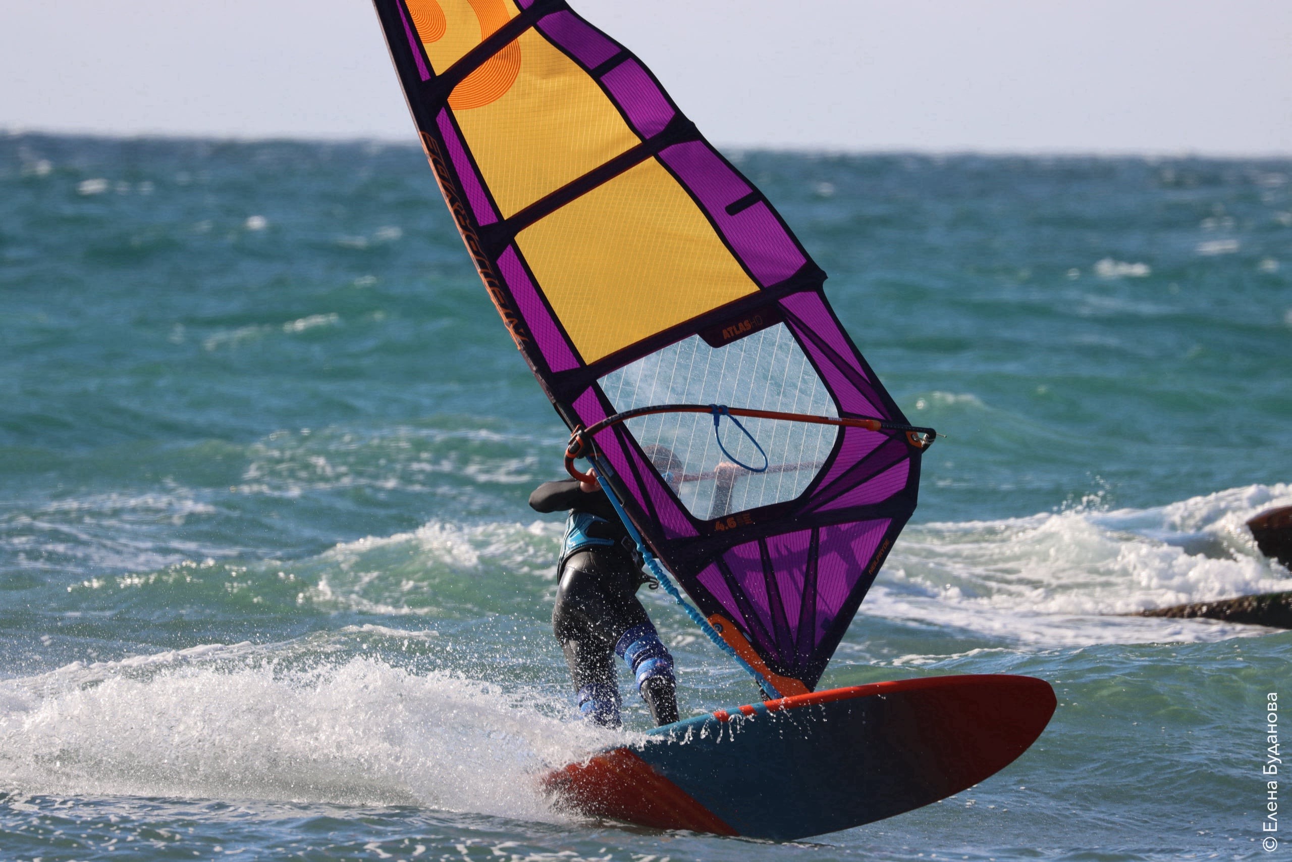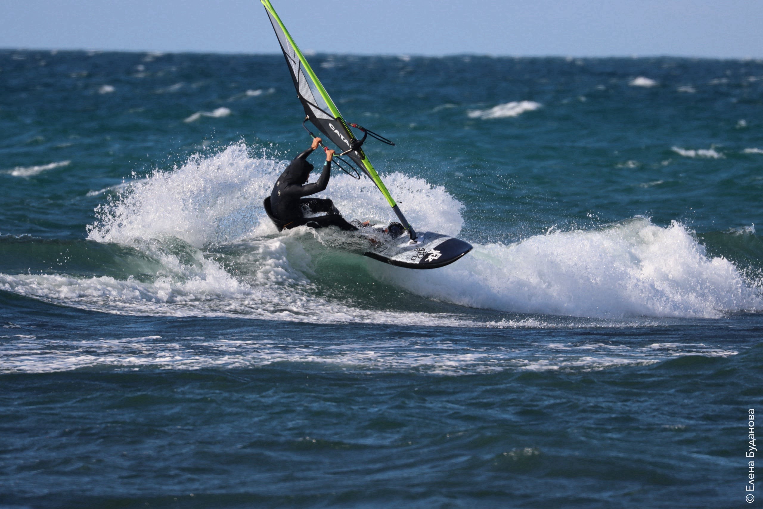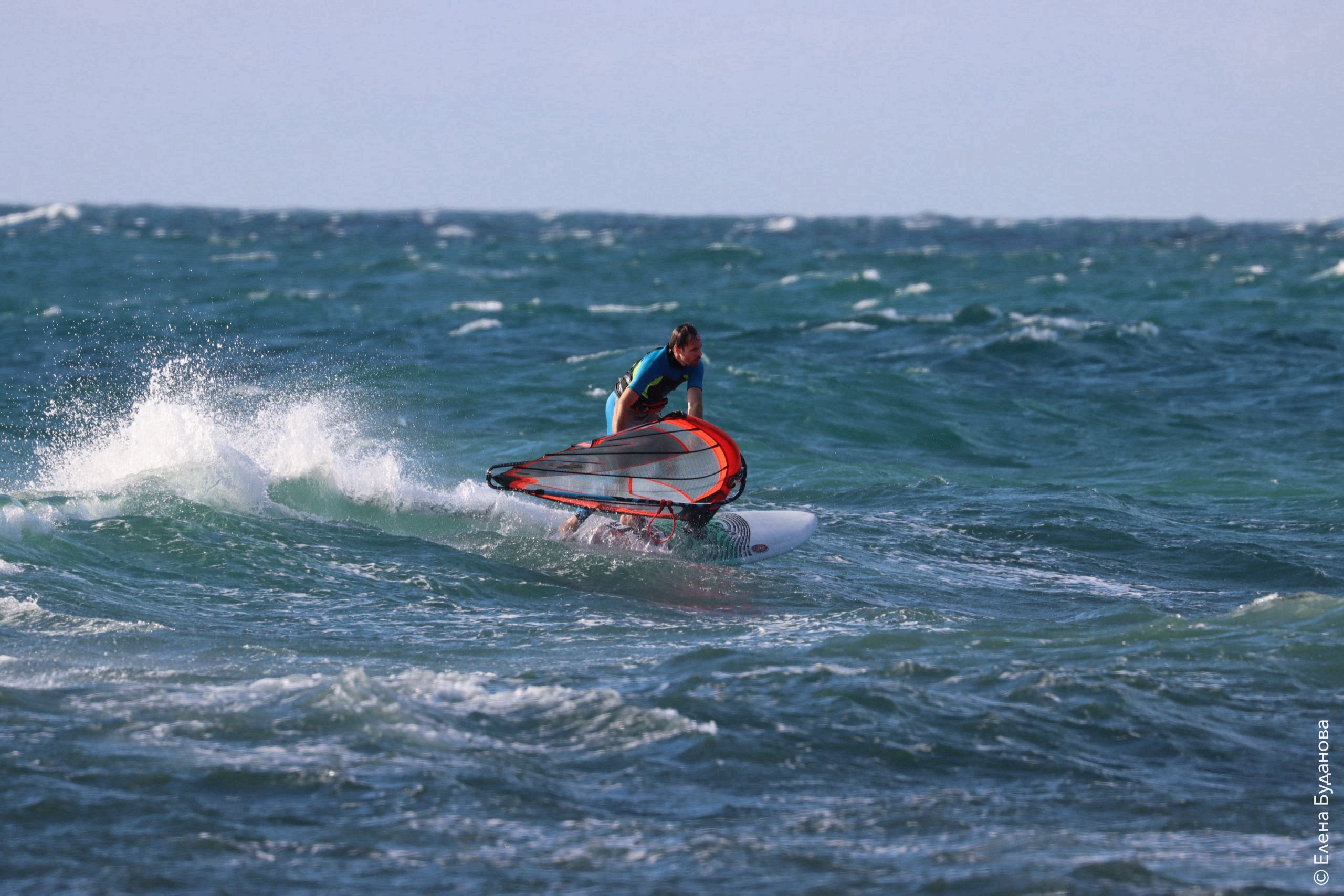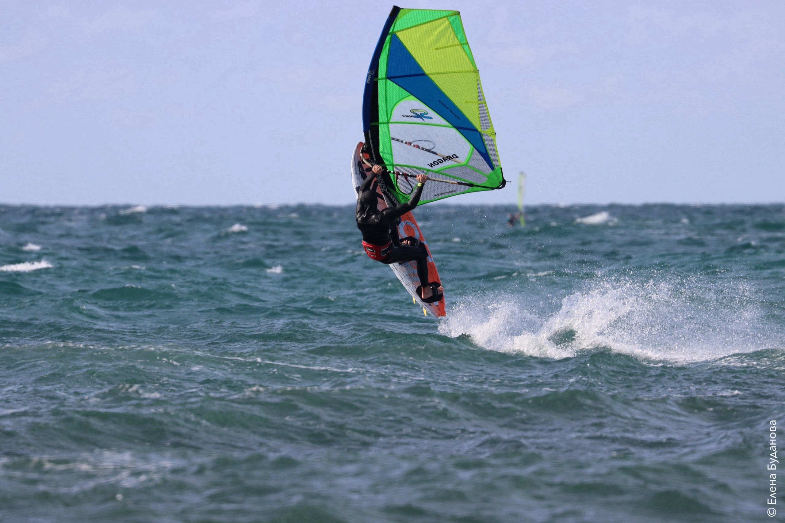Все так-же тепло, как и в прошлый понедельник. Условия еще лайтовее, доски 80-100, паруса 4.2–4.7, девушки на 3.7. Небольшая волна пошла после обеда, немного разнообразив каталку.