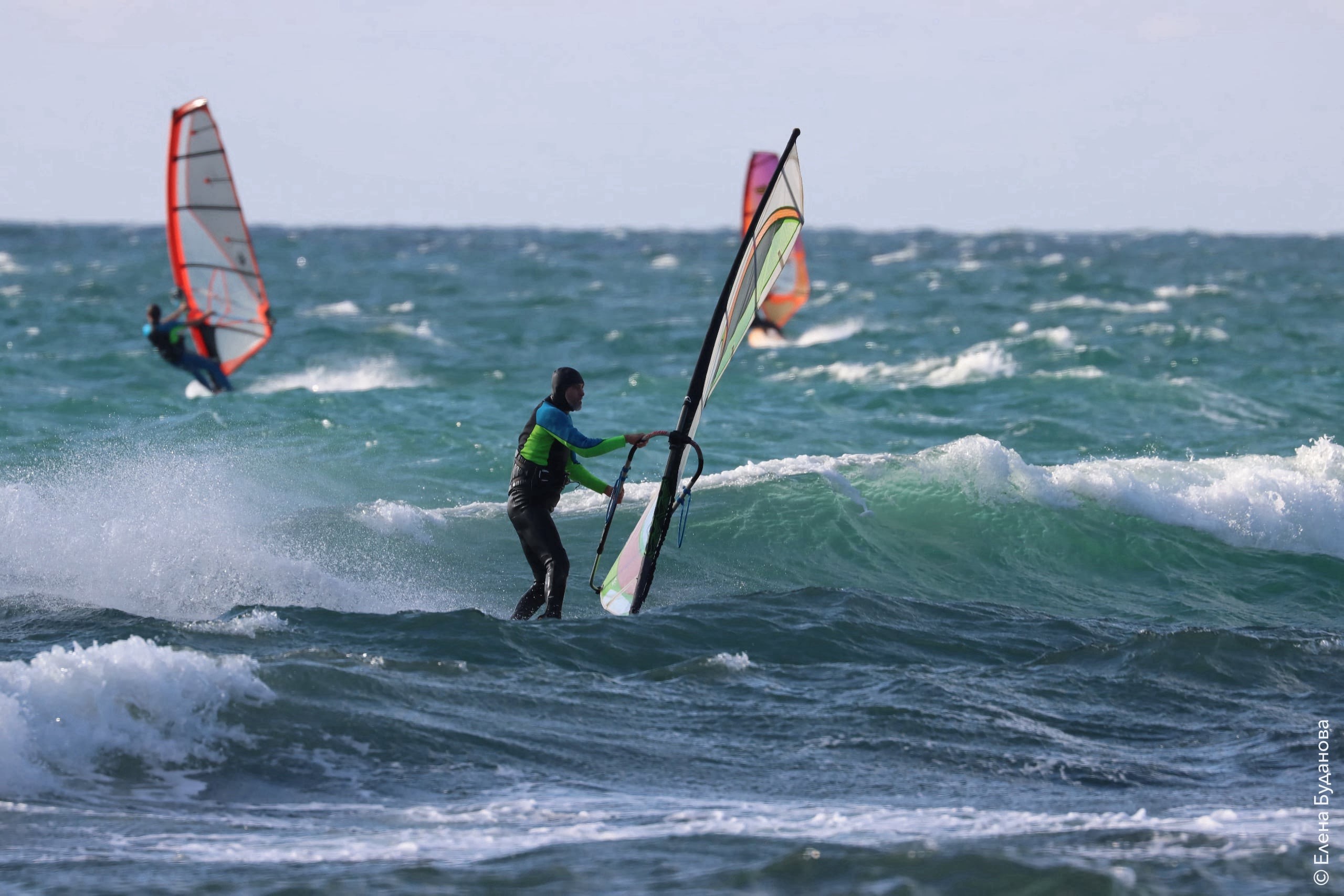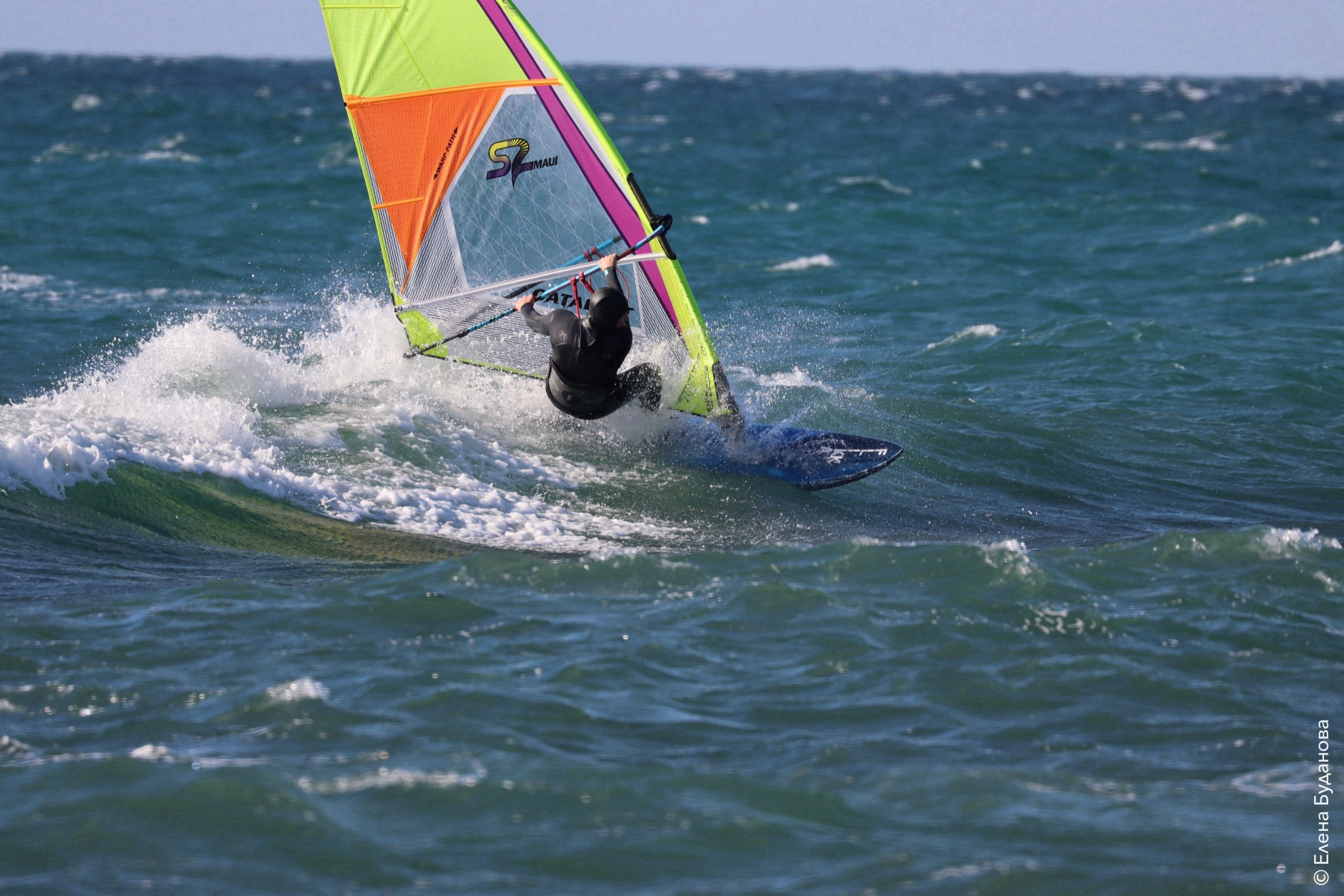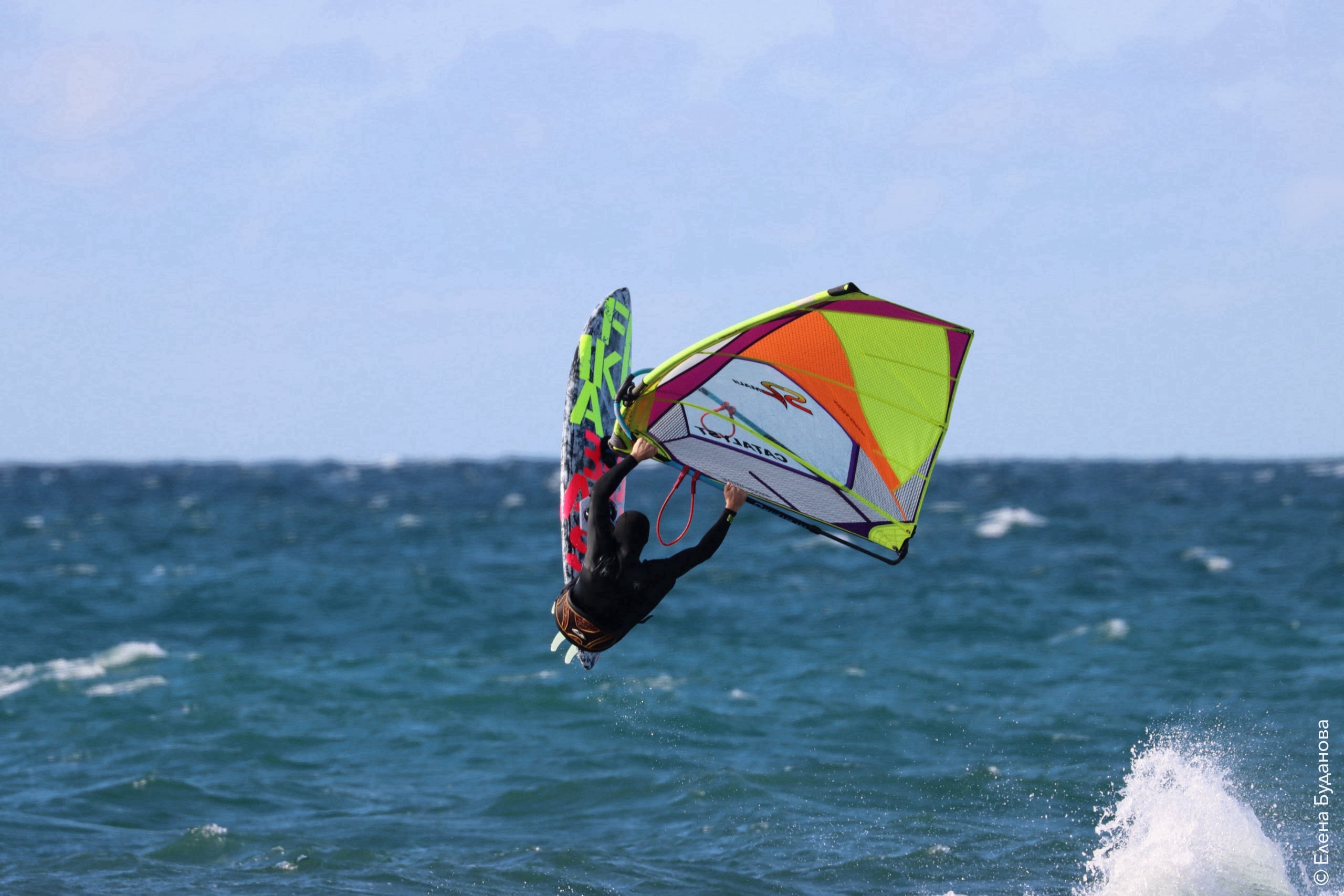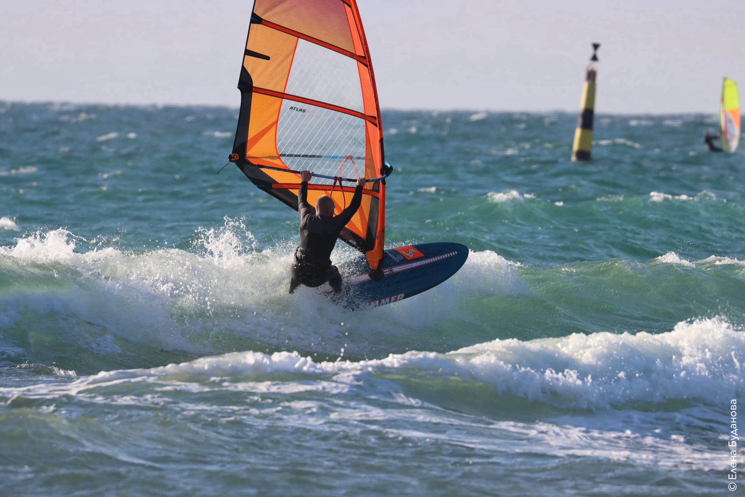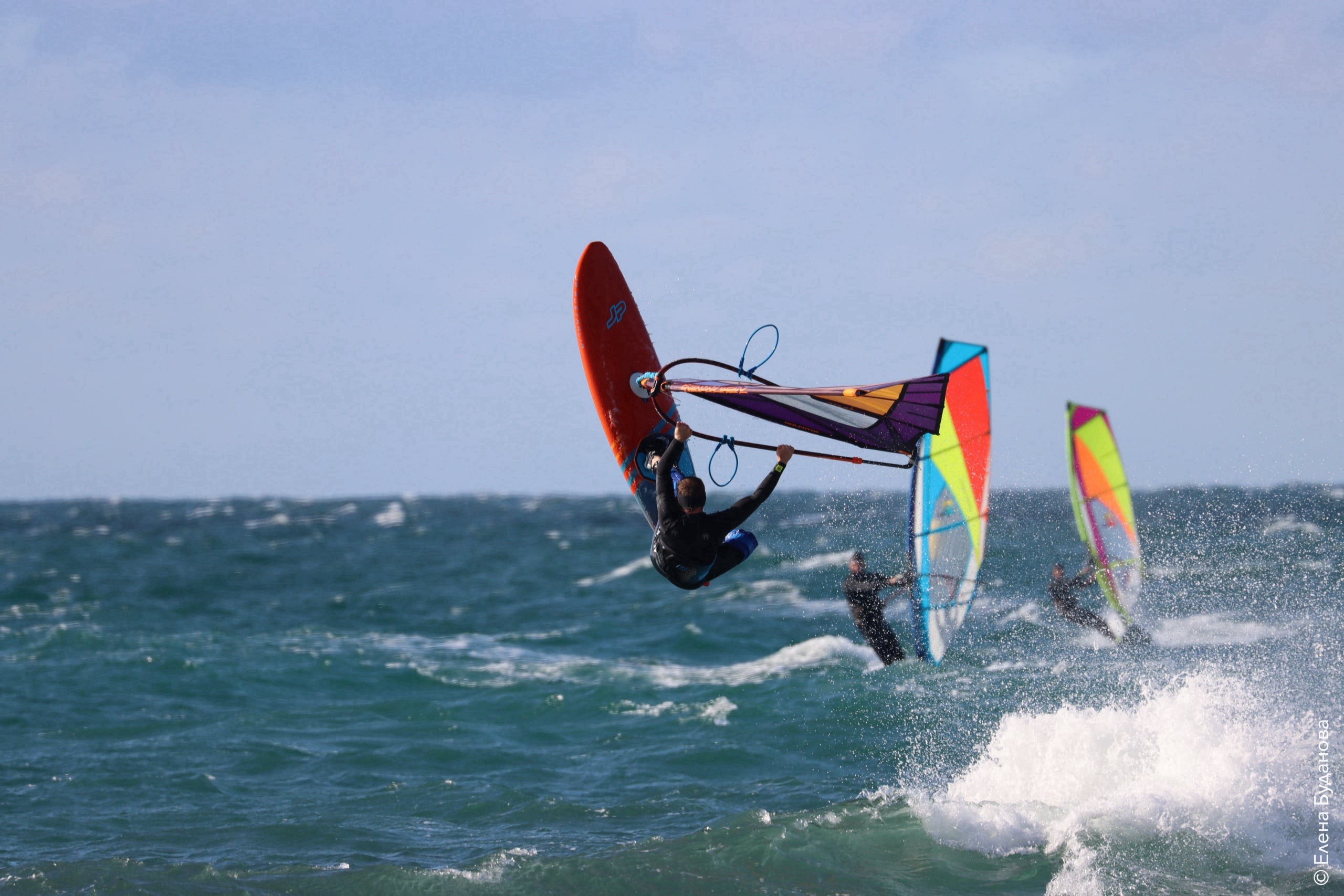 Все так-же тепло, как и в прошлый понедельник. Условия еще лайтовее, доски 80-100, паруса 4.2–4.7, девушки на 3.7. Небольшая волна пошла после обеда, немного разнообразив каталку.