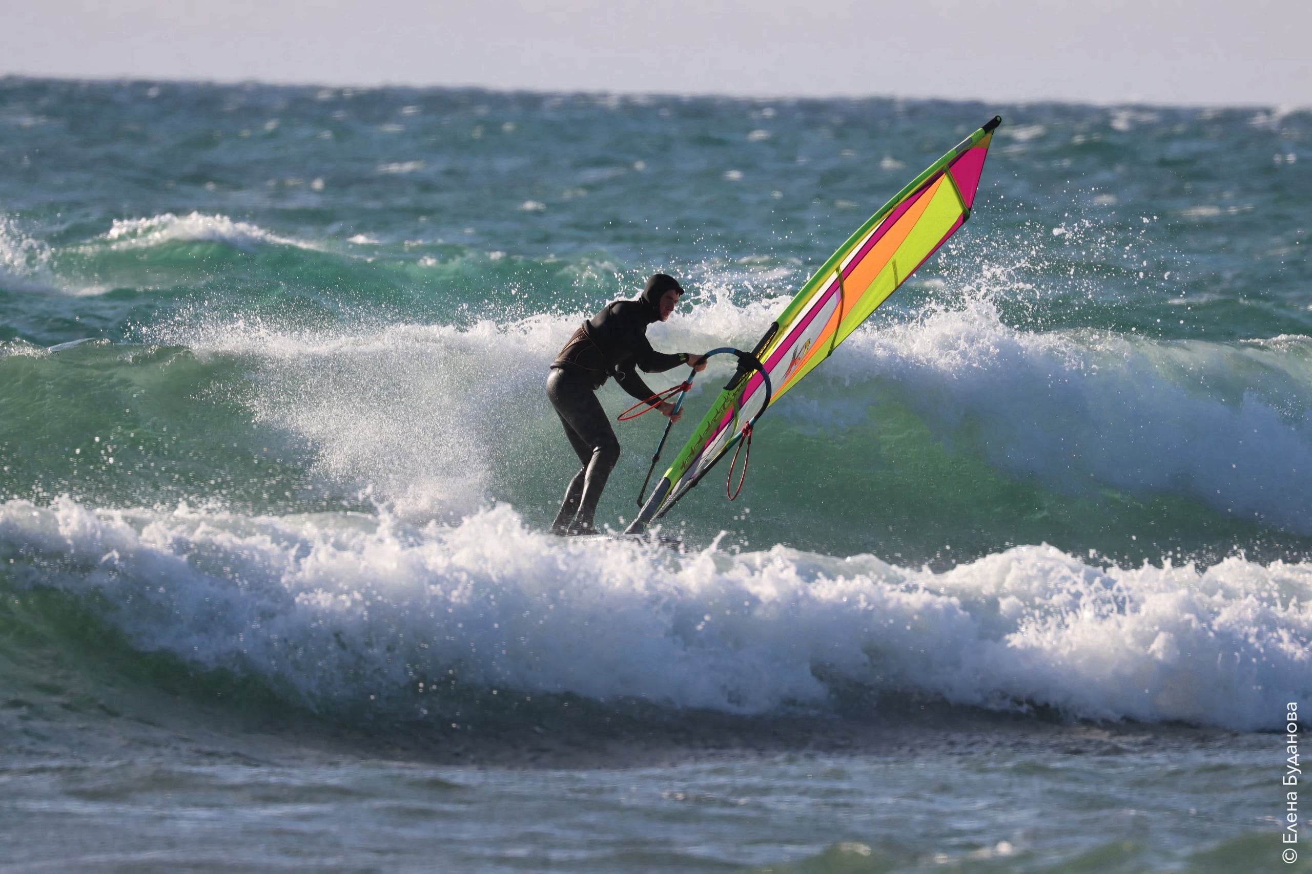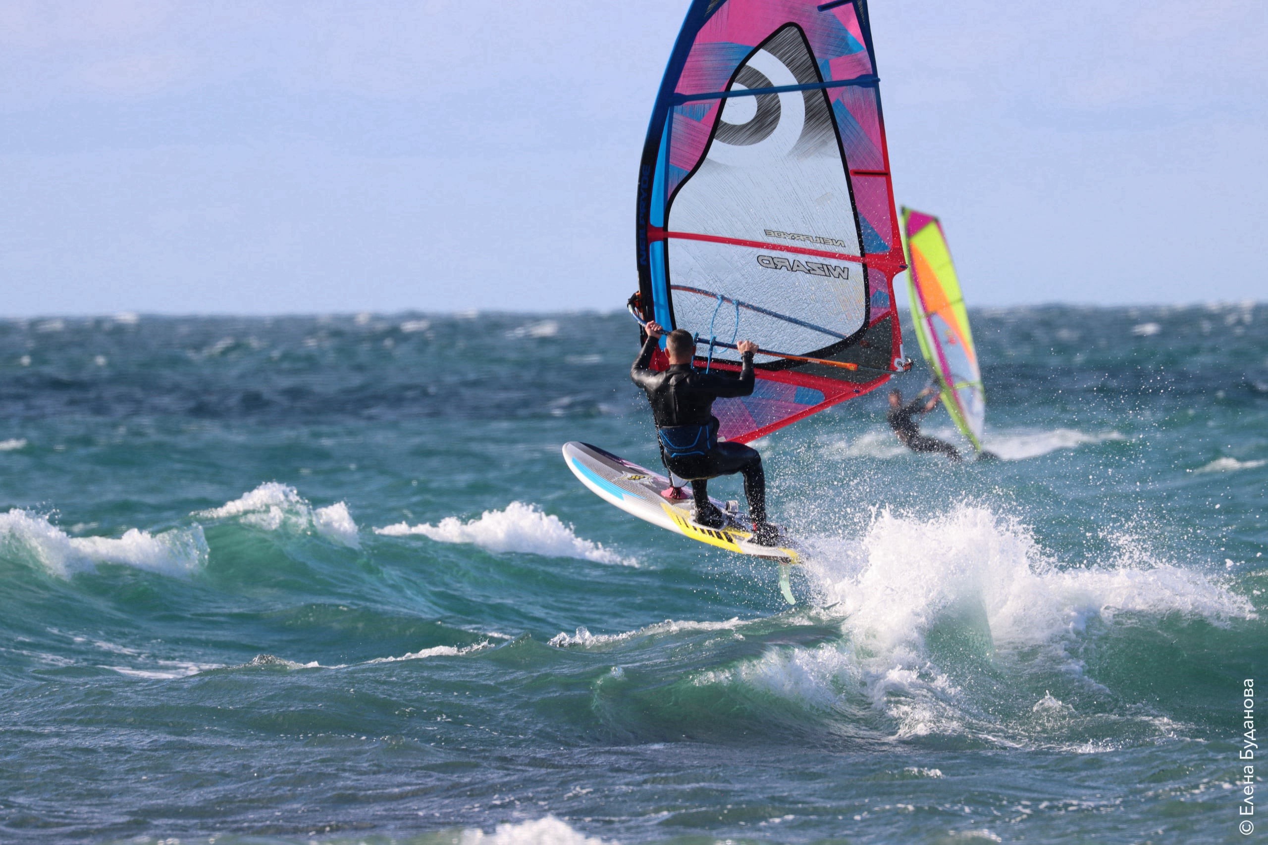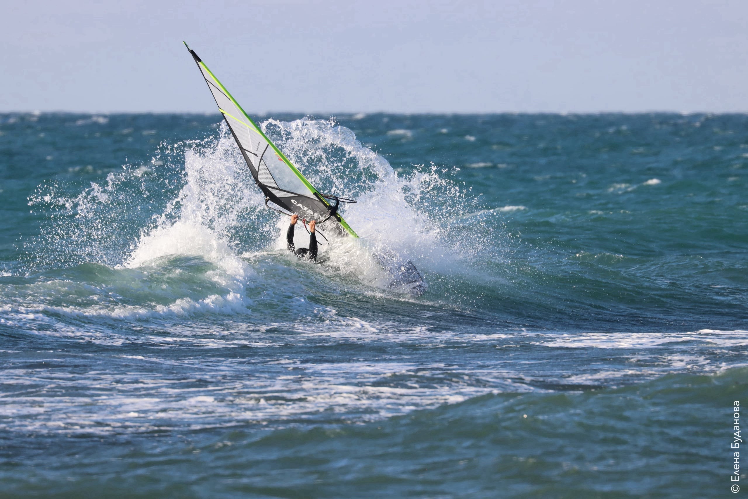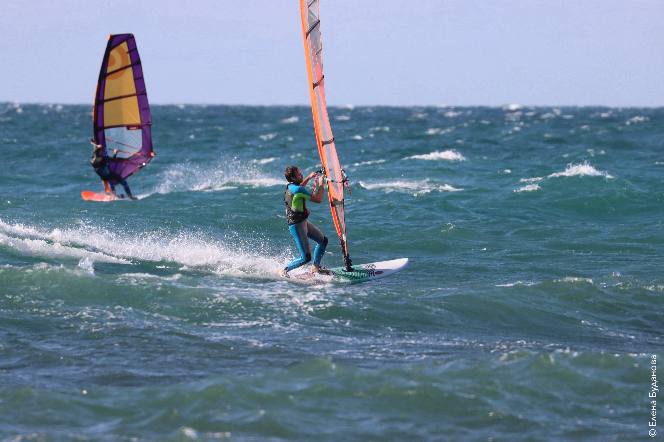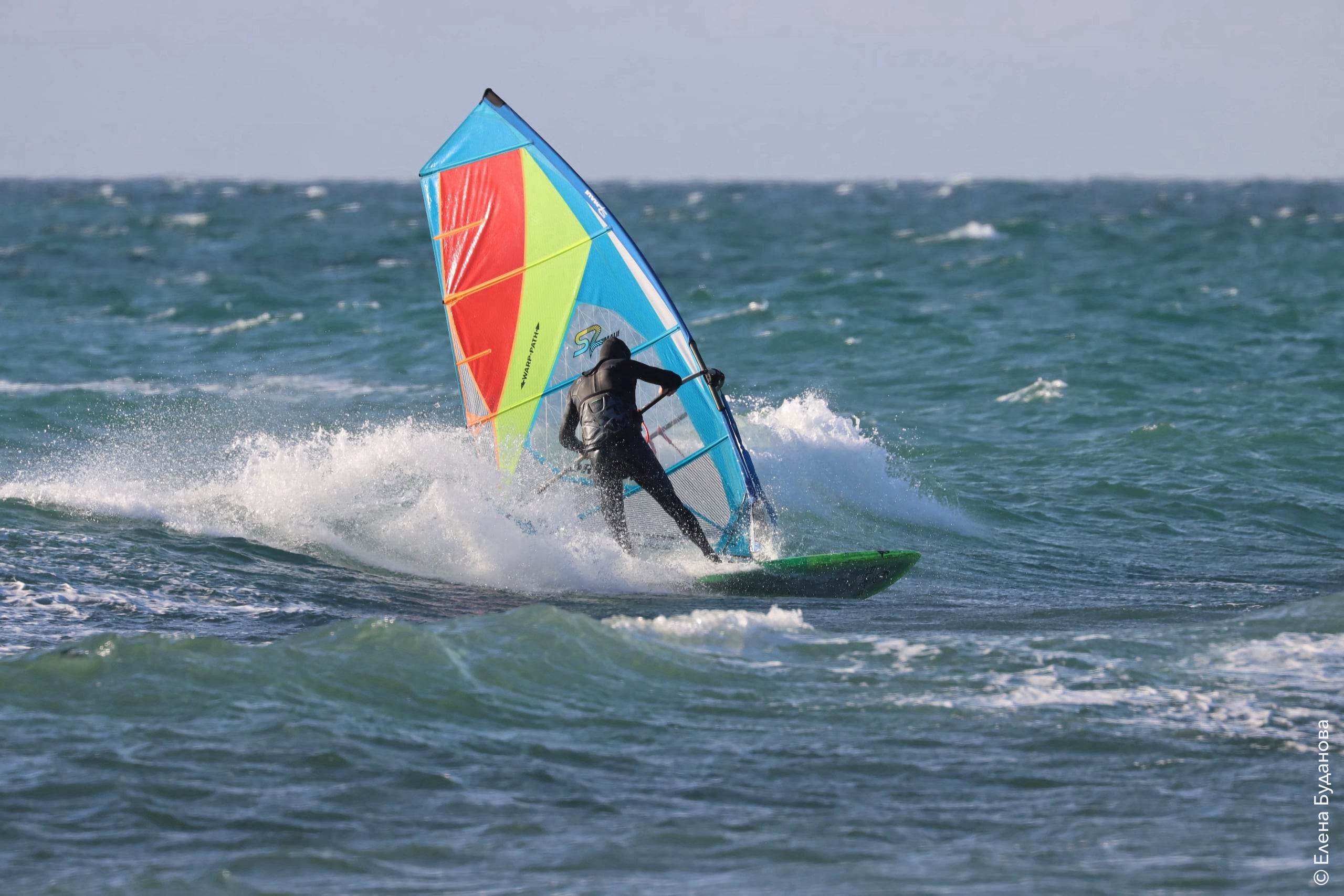 Все так-же тепло, как и в прошлый понедельник. Условия еще лайтовее, доски 80-100, паруса 4.2–4.7, девушки на 3.7. Небольшая волна пошла после обеда, немного разнообразив каталку.