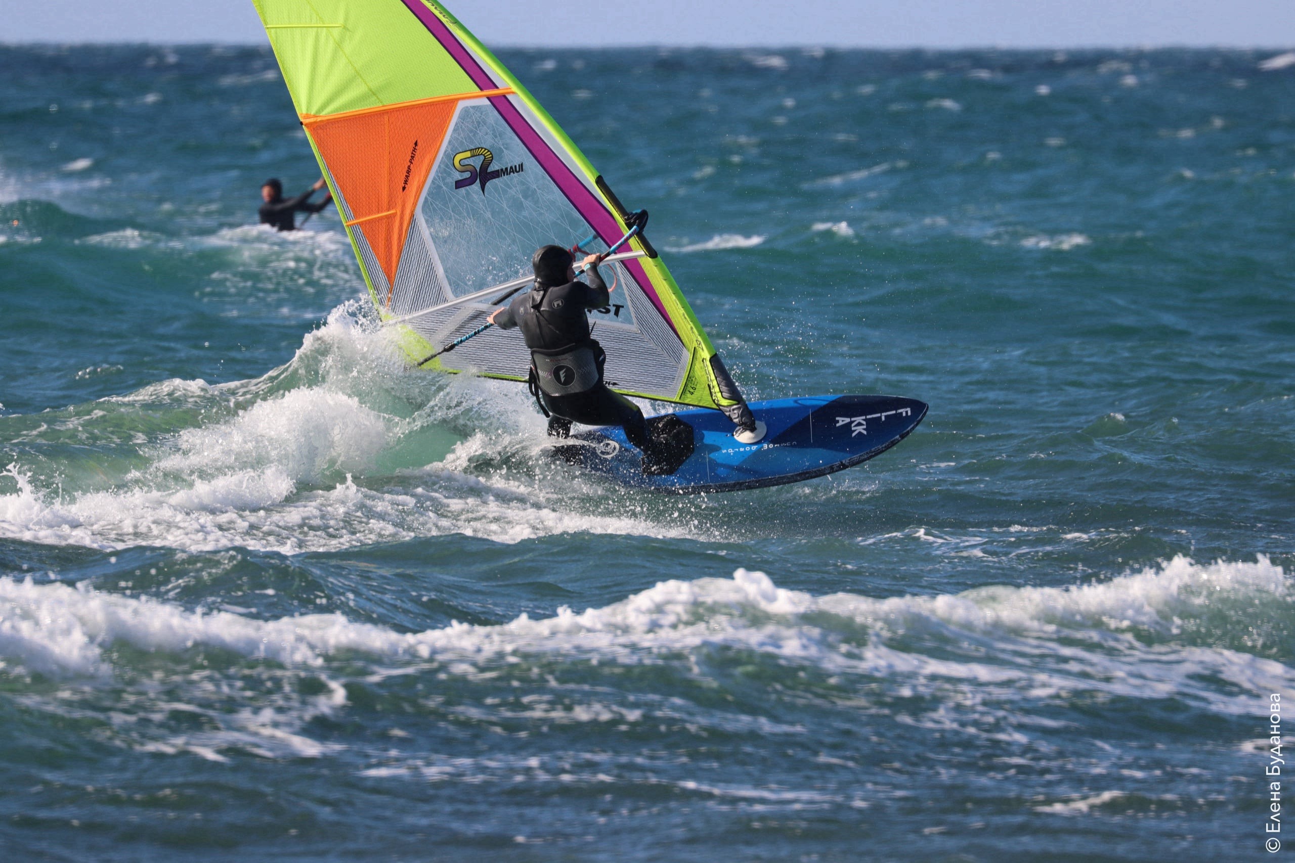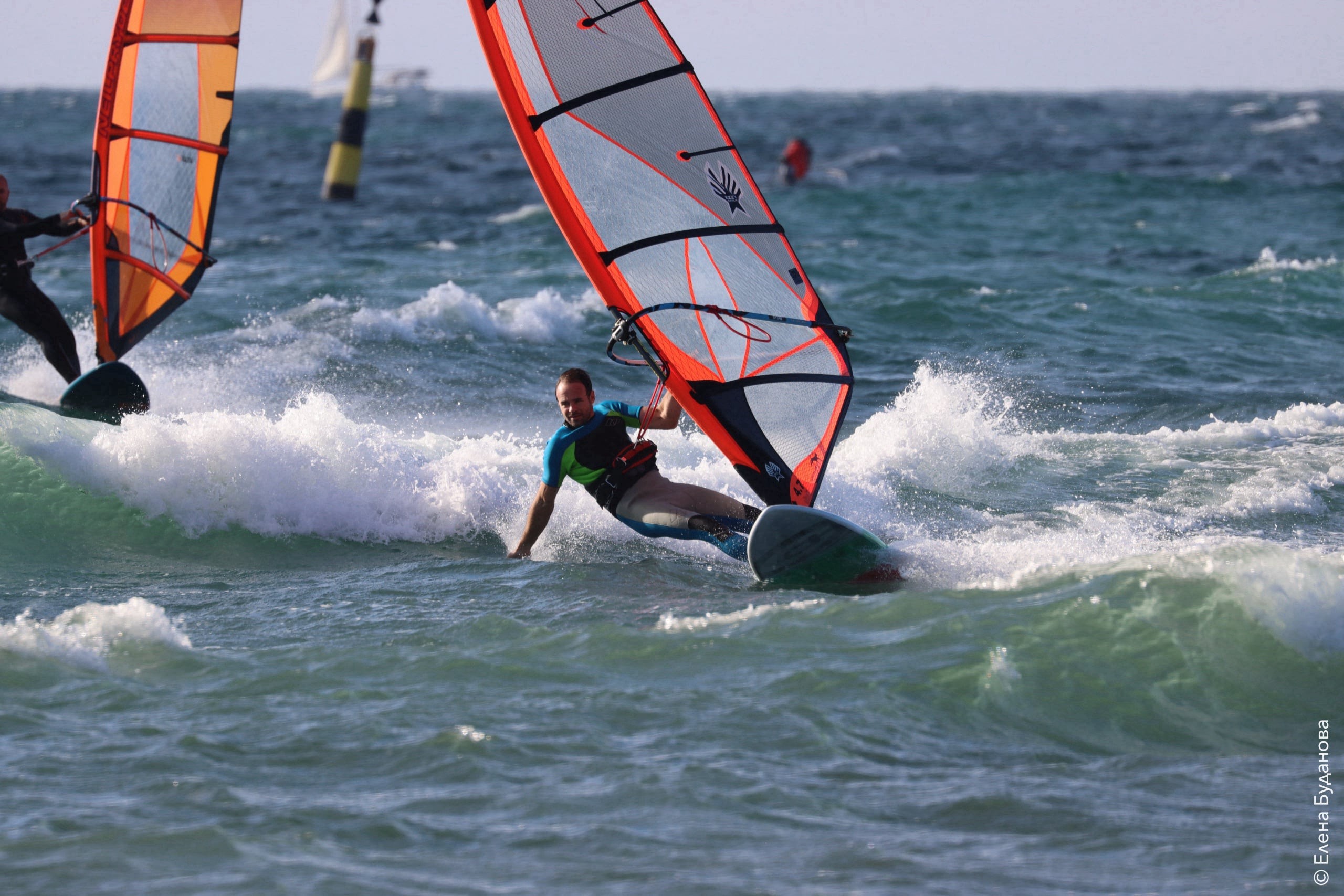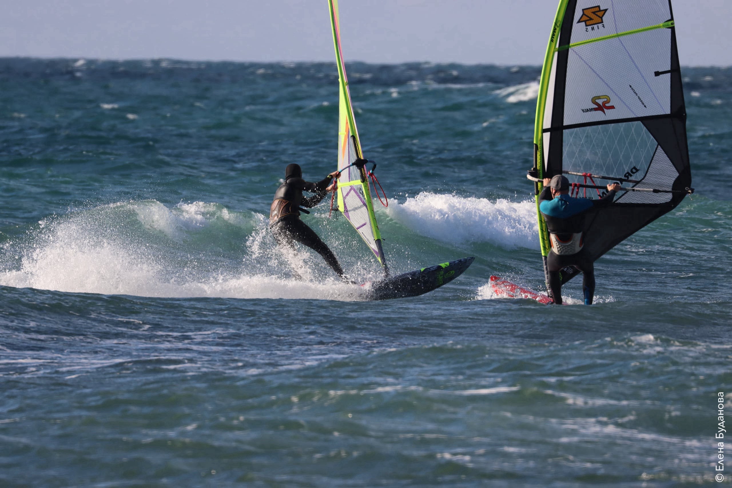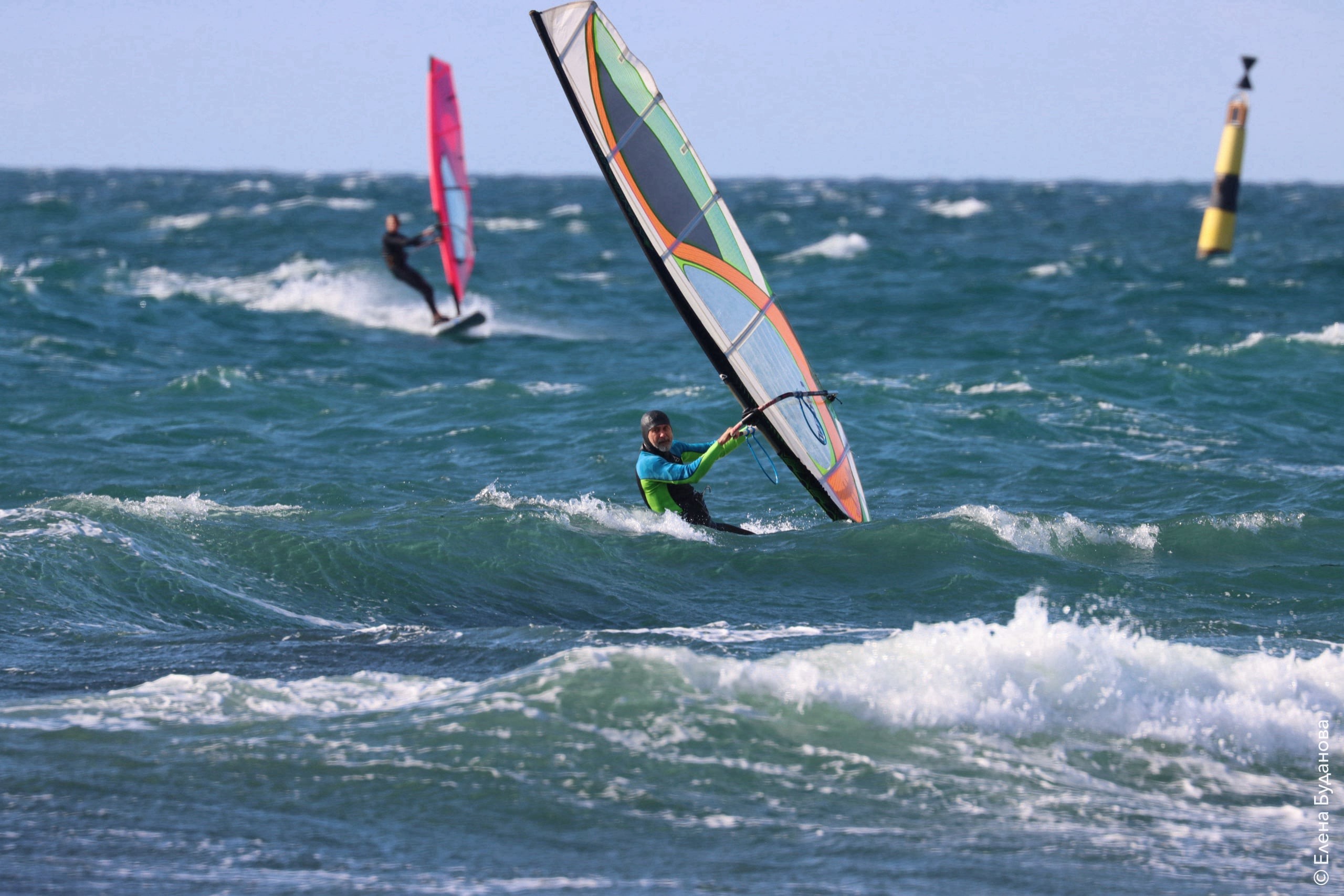 Все так-же тепло, как и в прошлый понедельник. Условия еще лайтовее, доски 80-100, паруса 4.2–4.7, девушки на 3.7. Небольшая волна пошла после обеда, немного разнообразив каталку.