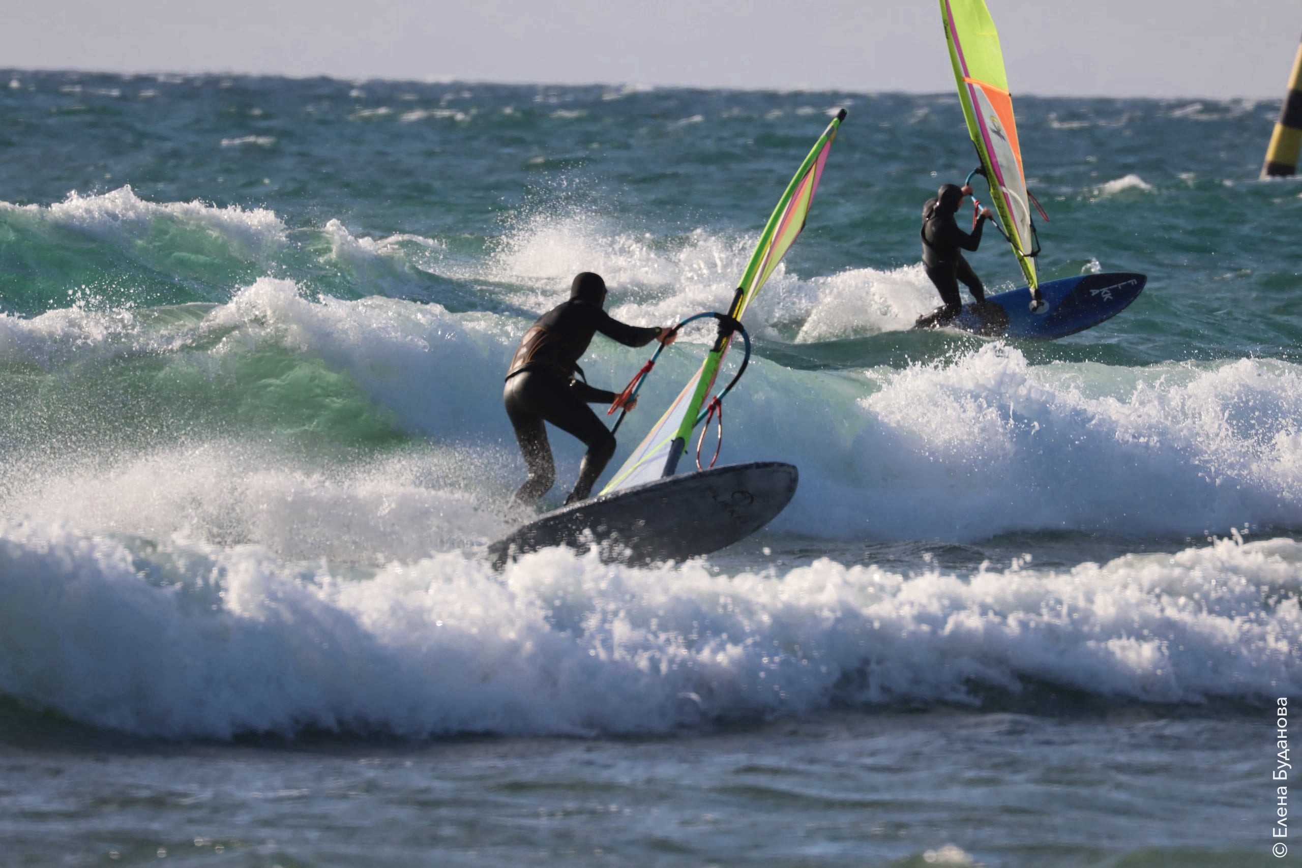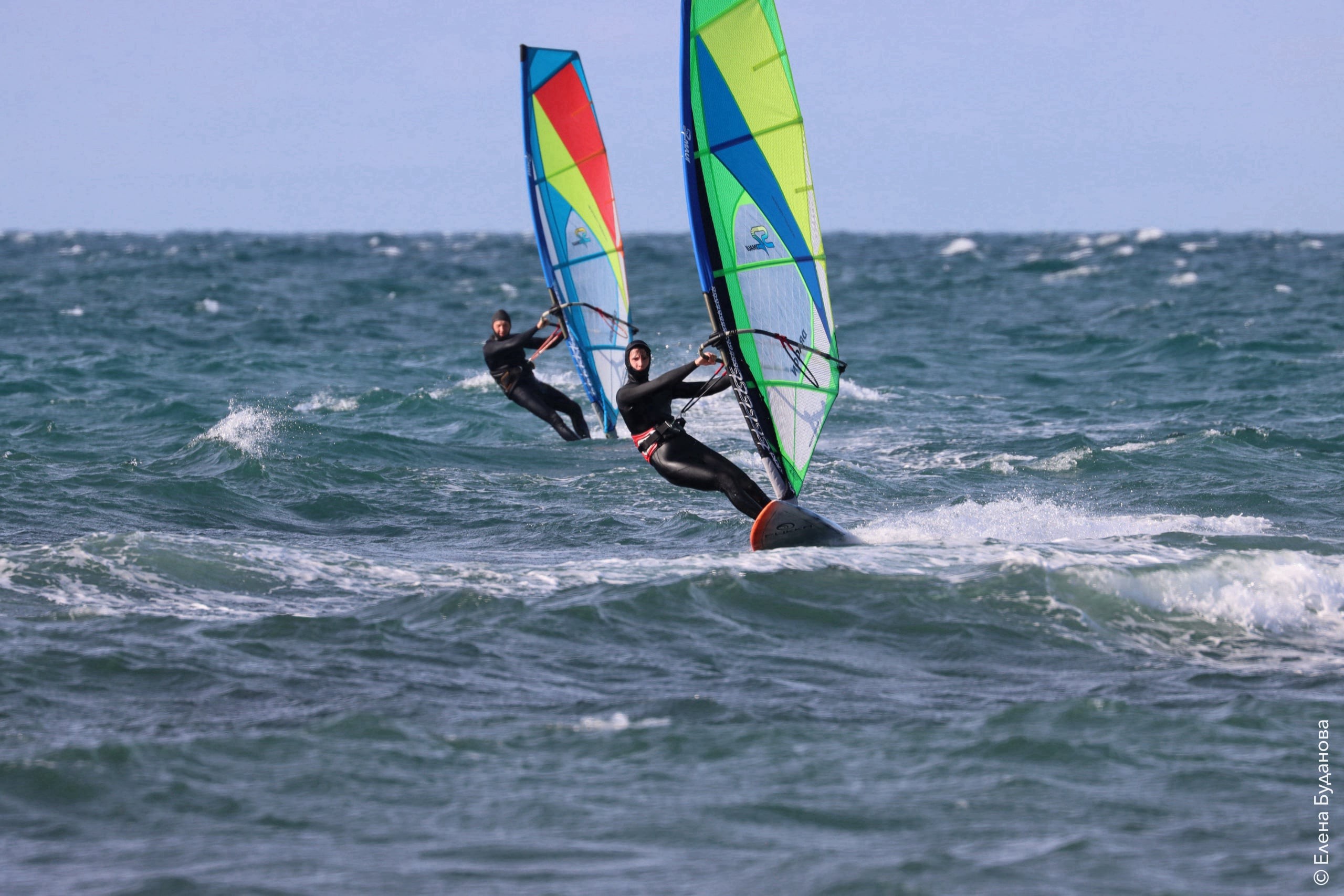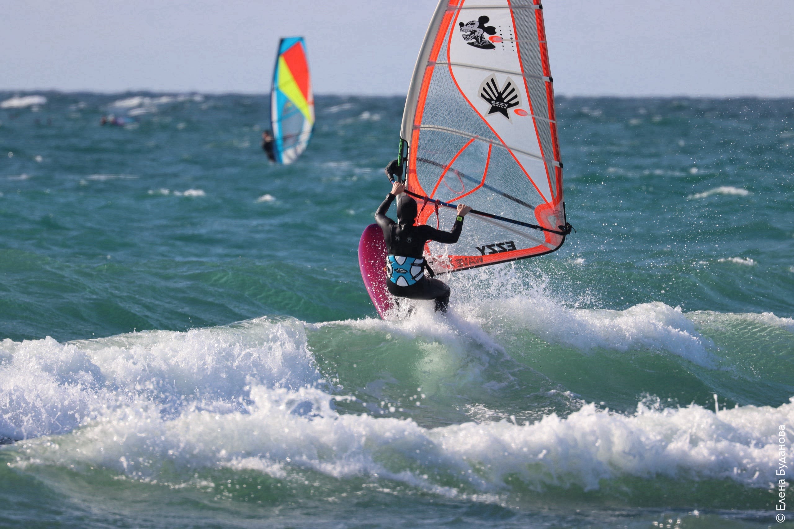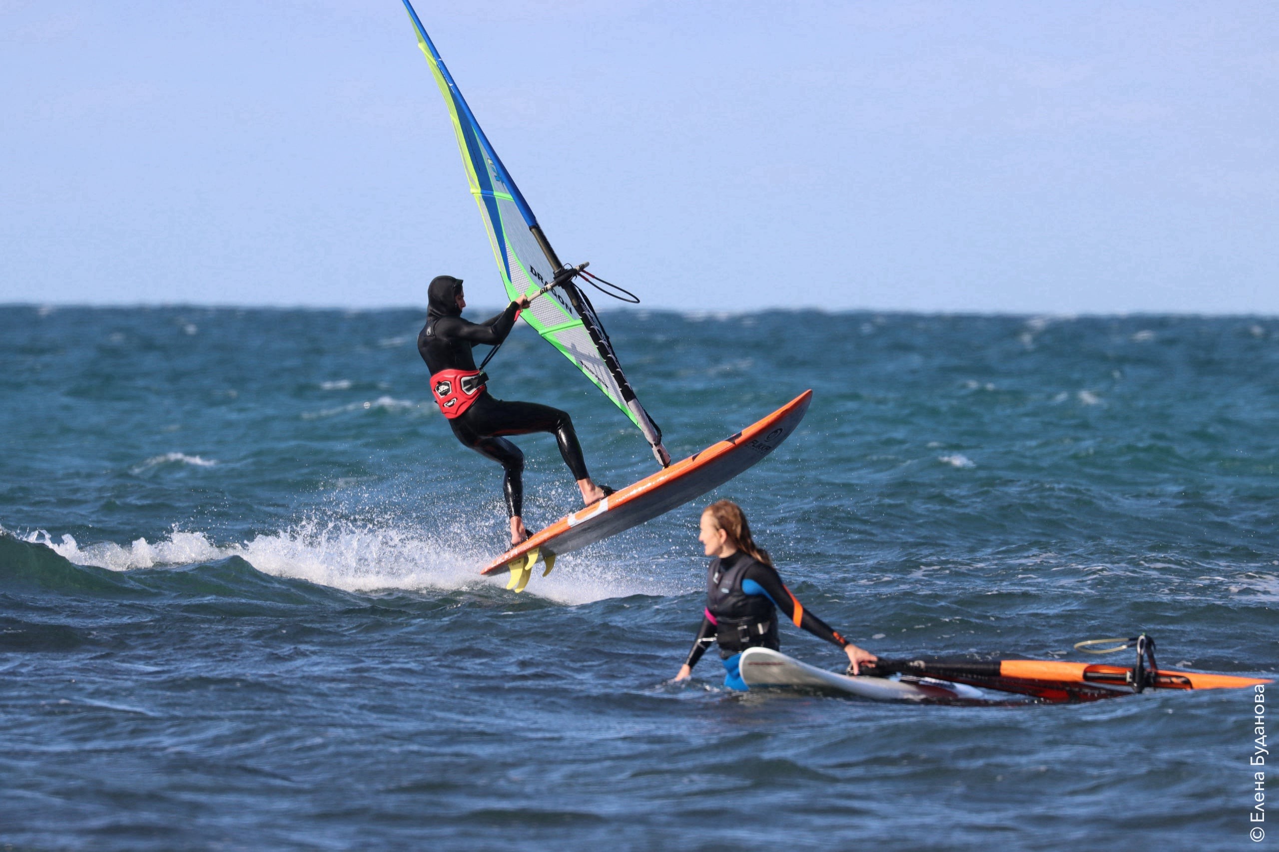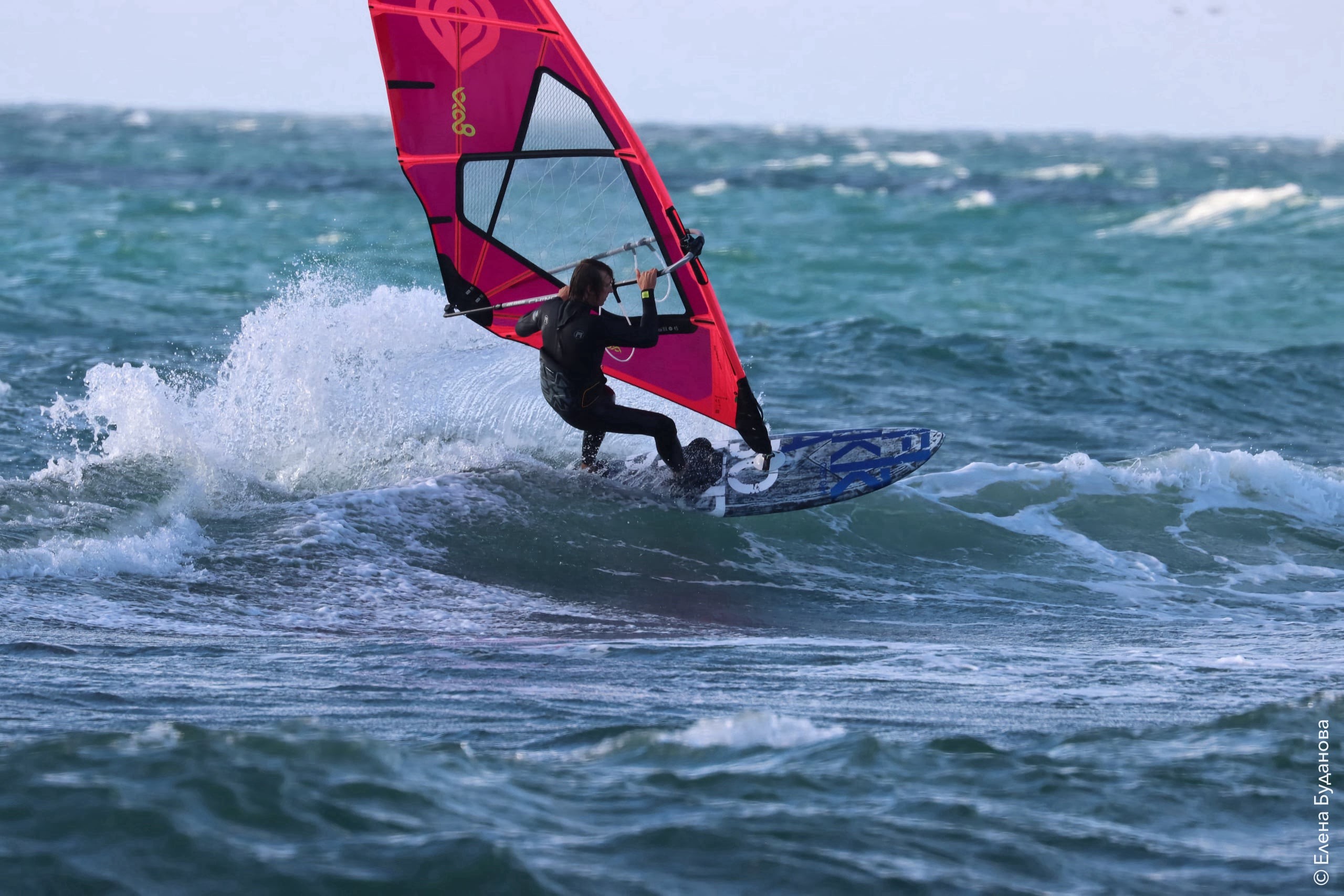 Все так-же тепло, как и в прошлый понедельник. Условия еще лайтовее, доски 80-100, паруса 4.2–4.7, девушки на 3.7. Небольшая волна пошла после обеда, немного разнообразив каталку.