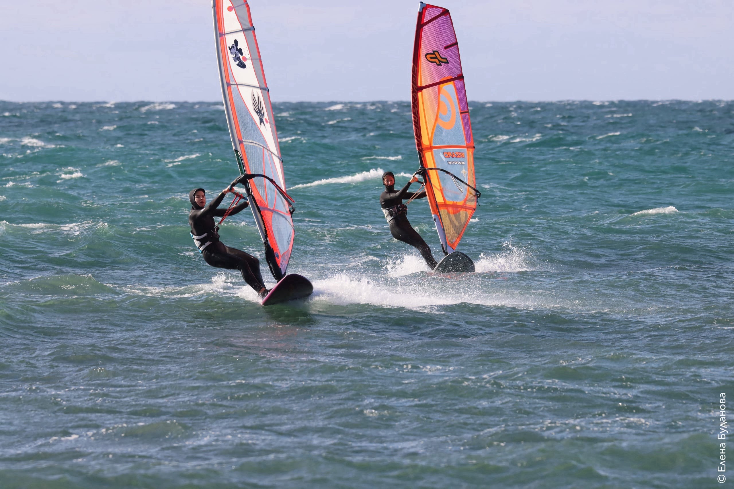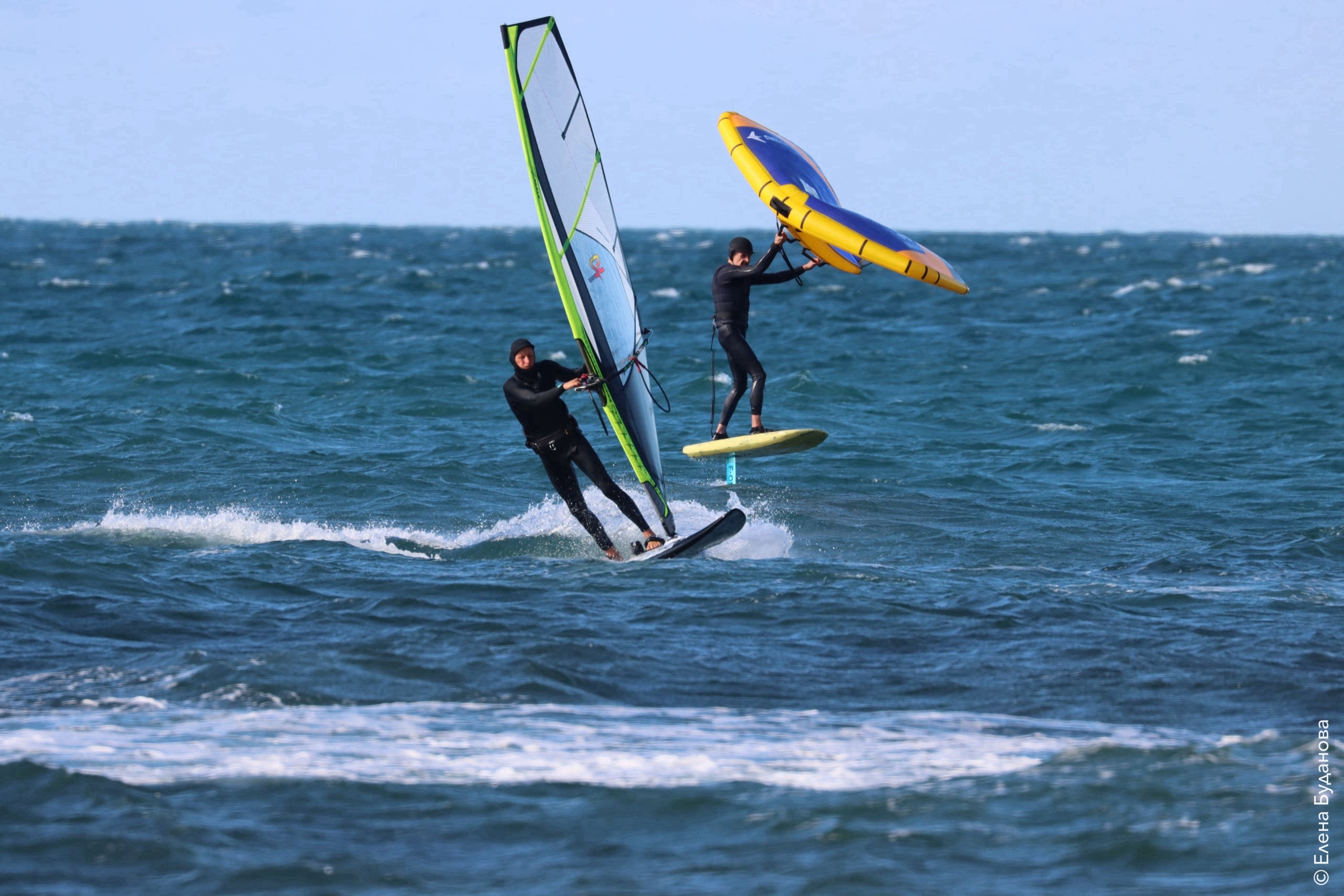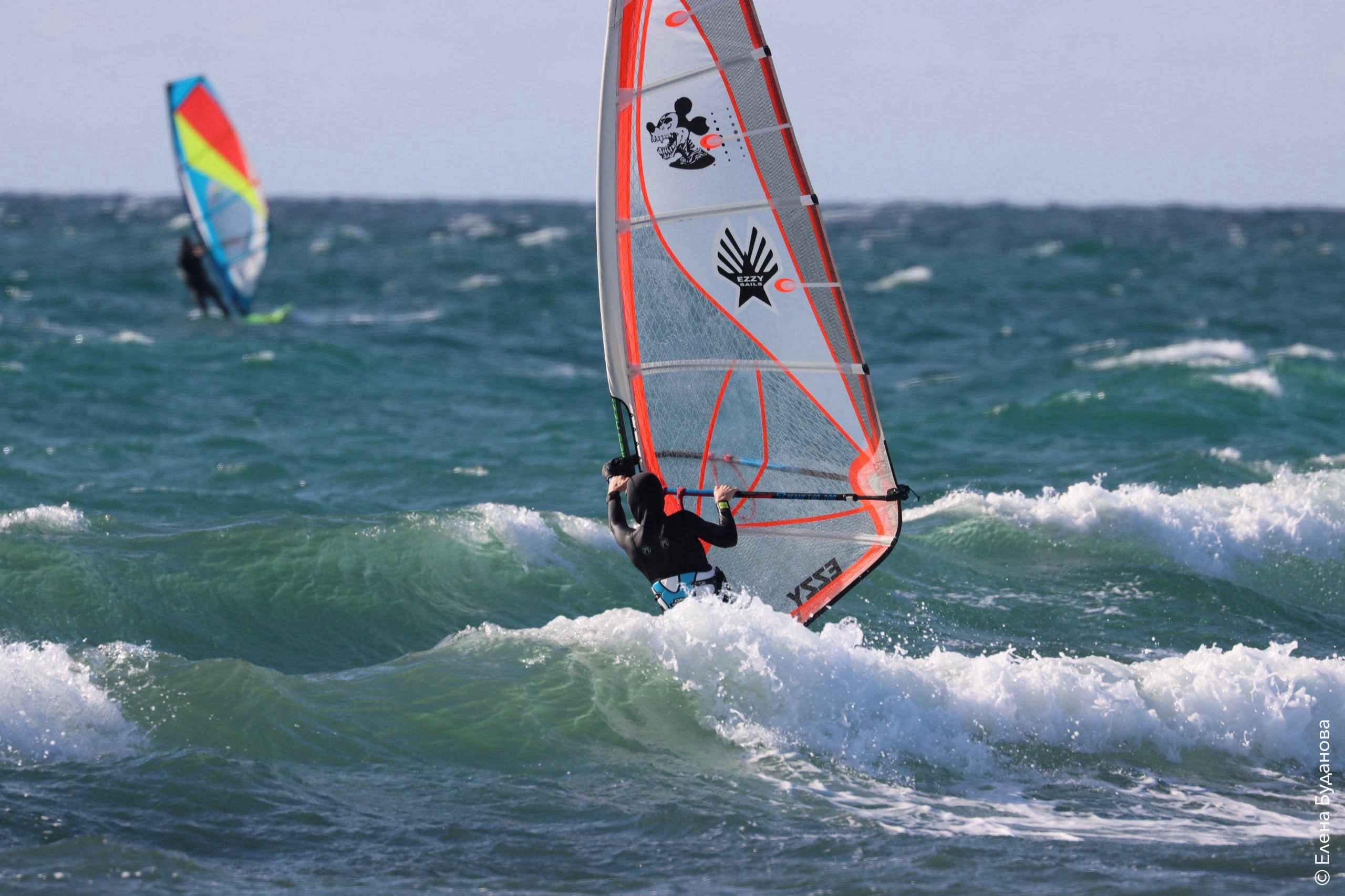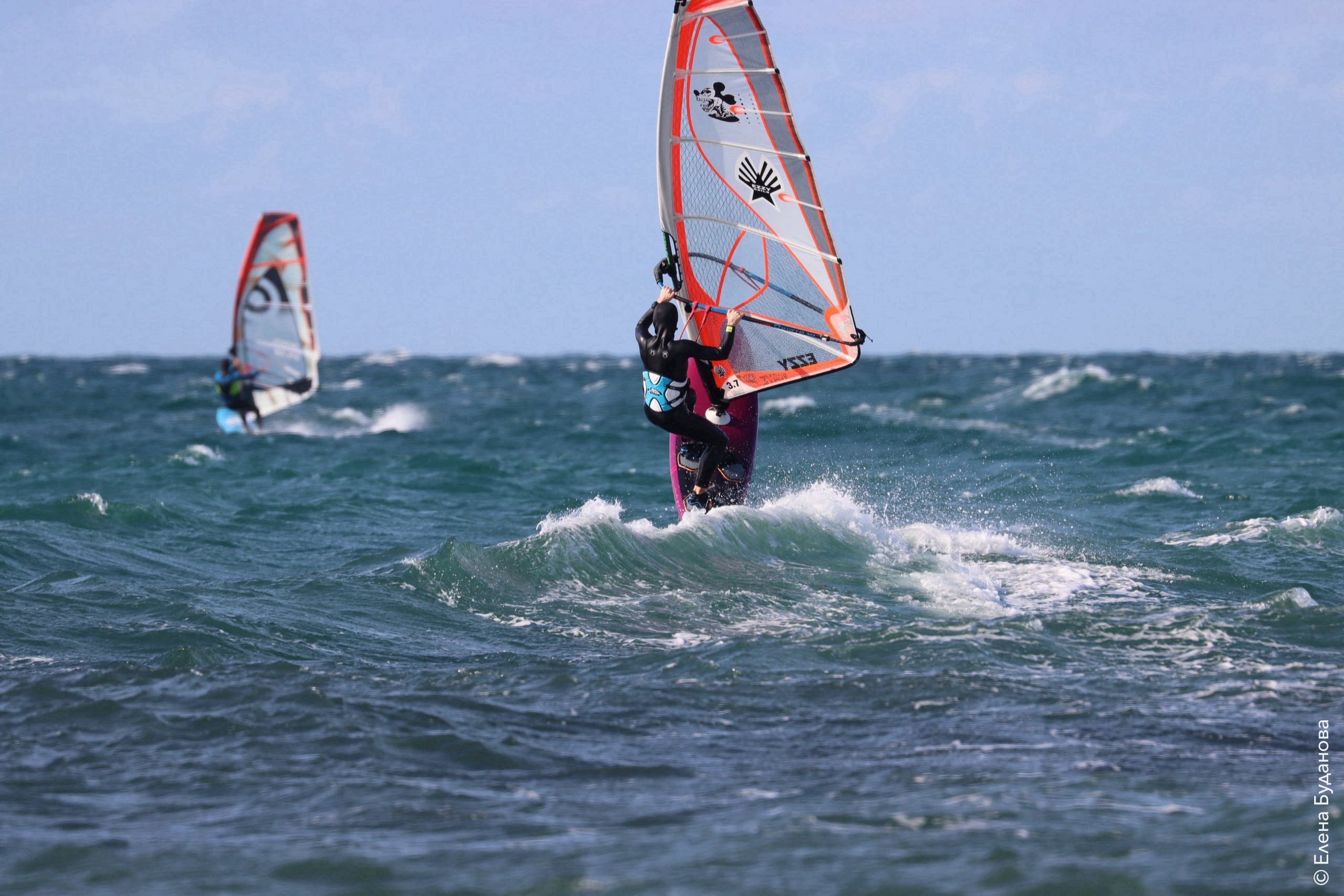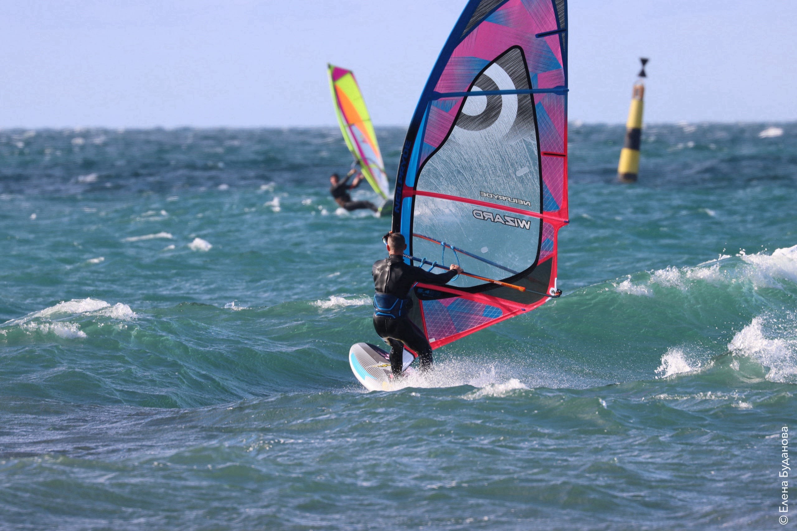 Все так-же тепло, как и в прошлый понедельник. Условия еще лайтовее, доски 80-100, паруса 4.2–4.7, девушки на 3.7. Небольшая волна пошла после обеда, немного разнообразив каталку.